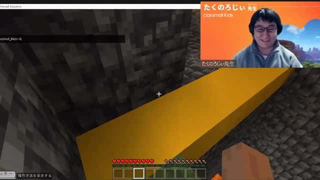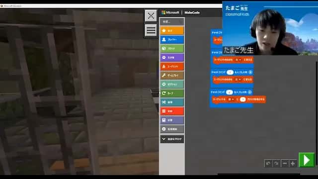 教育版マインクラフトのマルチプレイでクラスを実施。冒頭15分で説明し、そのあとは生徒さまによる実践